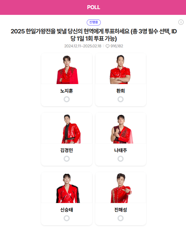 현역가왕2 투표하기는 하루에 한 번 가능하기 때문에, 매일 잊지 말고 투표하기를 진행해 주세요! 여러분의 한 표가 참가자의 승리에 큰 영향을 미친답니다.